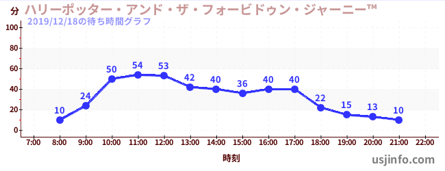 • ハリーポッター・アンド・ザ・フォービドゥン・ジャーニー™$B$N(B2019年12月18日の待ち時間