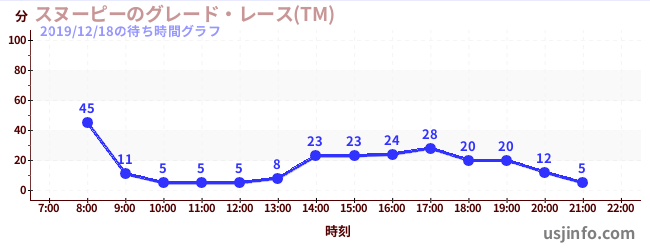 • スヌーピーのグレード・レース(TM)$B$N(B2019年12月18日の待ち時間