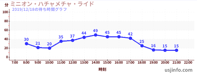 • ミニオン・ハチャメチャ・ライド$B$N(B2019年12月18日の待ち時間