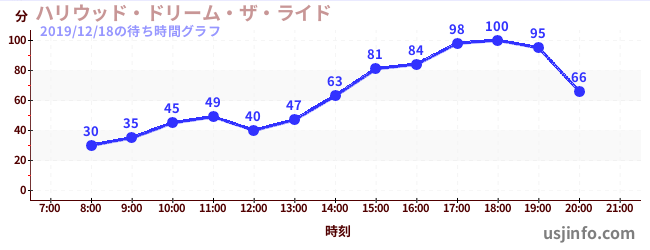 • ハリウッド・ドリーム・ザ・ライド$B$N(B2019年12月18日の待ち時間
