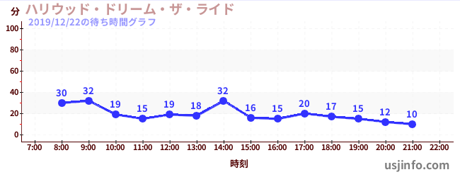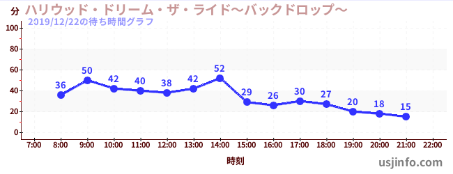 • ハリウッド・ドリーム・ザ・ライド〜バックドロップ〜$B$N(B2019年12月22日の待ち時間