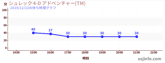 • シュレック 4-D アドベンチャー(TM)$B$N(B2019年12月22日の待ち時間
