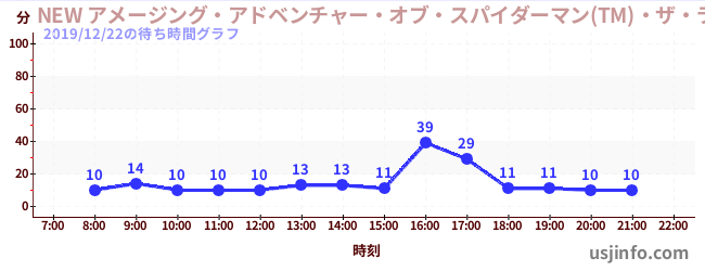 • NEW アメージング・アドベンチャー・オブ・スパイダーマン(TM)・ザ・ライド 4K3D$B$N(B2019年12月22日の待ち時間