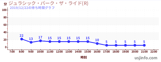 • ジュラシック・パーク・ザ・ライド(R)$B$N(B2019年12月22日の待ち時間