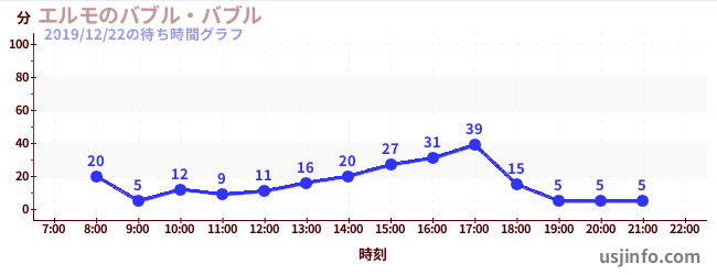 • エルモのバブル・バブル$B$N(B2019年12月22日の待ち時間