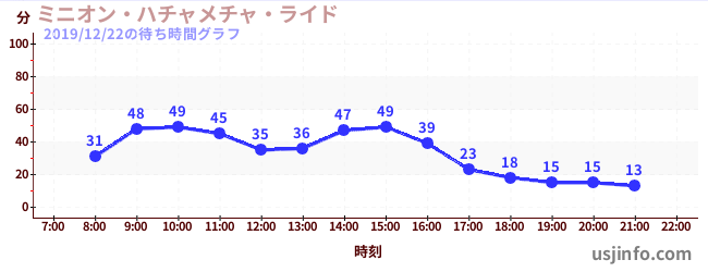 • ミニオン・ハチャメチャ・ライド$B$N(B2019年12月22日の待ち時間