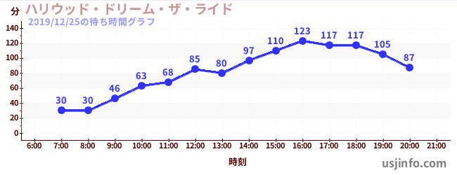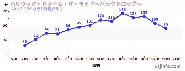 • ハリウッド・ドリーム・ザ・ライド〜バックドロップ〜$B$N(B2019年12月25日の待ち時間