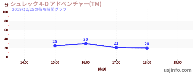 • シュレック 4-D アドベンチャー(TM)$B$N(B2019年12月25日の待ち時間