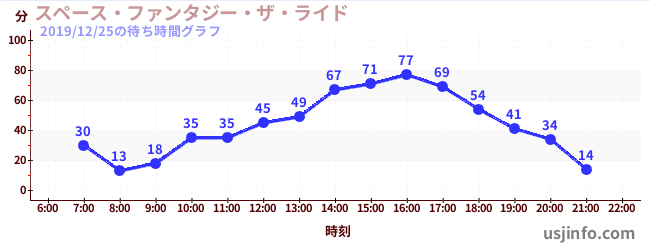 • スペース・ファンタジー・ザ・ライド$B$N(B2019年12月25日の待ち時間