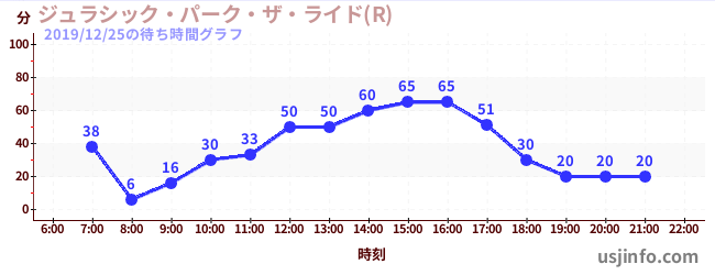• ジュラシック・パーク・ザ・ライド(R)$B$N(B2019年12月25日の待ち時間