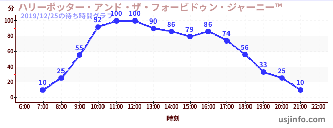 • ハリーポッター・アンド・ザ・フォービドゥン・ジャーニー™$B$N(B2019年12月25日の待ち時間