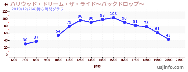 • ハリウッド・ドリーム・ザ・ライド〜バックドロップ〜$B$N(B2019年12月26日の待ち時間