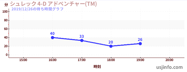 • シュレック 4-D アドベンチャー(TM)$B$N(B2019年12月26日の待ち時間