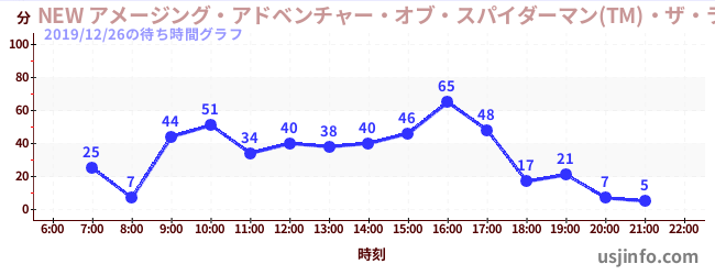 • NEW アメージング・アドベンチャー・オブ・スパイダーマン(TM)・ザ・ライド 4K3D$B$N(B2019年12月26日の待ち時間