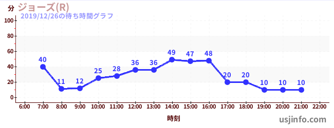 • ジョーズ(R)$B$N(B2019年12月26日の待ち時間