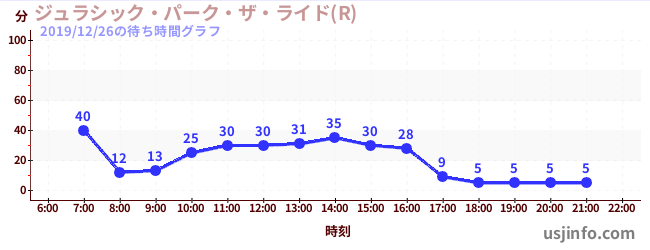 • ジュラシック・パーク・ザ・ライド(R)$B$N(B2019年12月26日の待ち時間