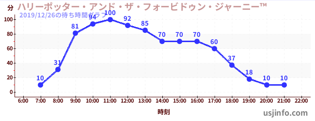 • ハリーポッター・アンド・ザ・フォービドゥン・ジャーニー™$B$N(B2019年12月26日の待ち時間