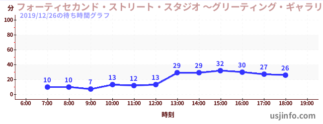 • フォーティセカンド・ストリート・スタジオ ~グリーティング・ギャラリー~ ミニオン$B$N(B2019年12月26日の待ち時間