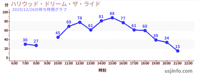 • ハリウッド・ドリーム・ザ・ライド$B$N(B2019年12月26日の待ち時間