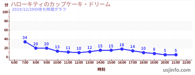 • ハローキティのカップケーキ・ドリーム$B$N(B2019年12月29日の待ち時間