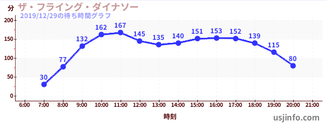 • ザ・フライング・ダイナソー$B$N(B2019年12月29日の待ち時間