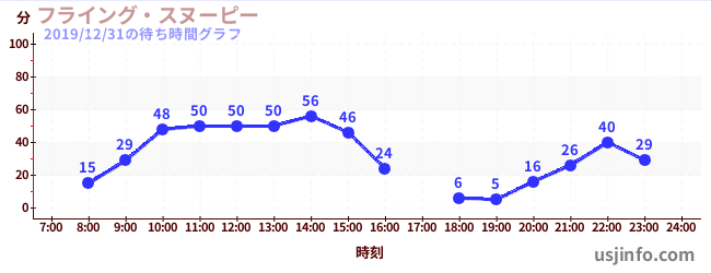 • フライング・スヌーピー$B$N(B2019年12月31日の待ち時間
