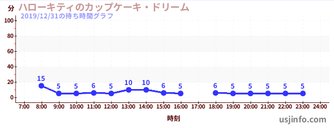 • ハローキティのカップケーキ・ドリーム$B$N(B2019年12月31日の待ち時間