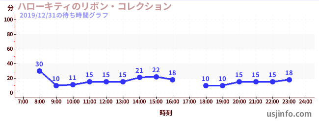 • ハローキティのリボン・コレクション$B$N(B2019年12月31日の待ち時間