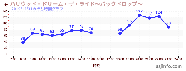• ハリウッド・ドリーム・ザ・ライド〜バックドロップ〜$B$N(B2019年12月31日の待ち時間