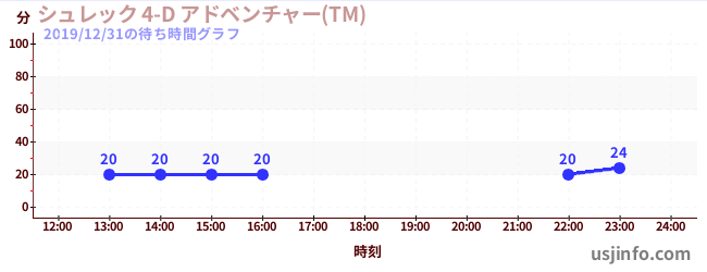 • シュレック 4-D アドベンチャー(TM)$B$N(B2019年12月31日の待ち時間