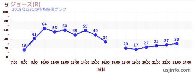 • ジョーズ(R)$B$N(B2019年12月31日の待ち時間