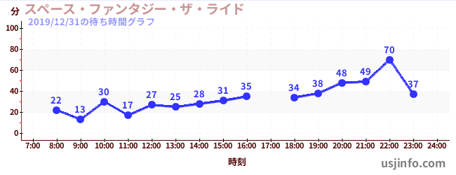 • スペース・ファンタジー・ザ・ライド$B$N(B2019年12月31日の待ち時間