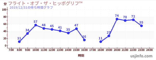 • フライト・オブ・ザ・ヒッポグリフ™$B$N(B2019年12月31日の待ち時間