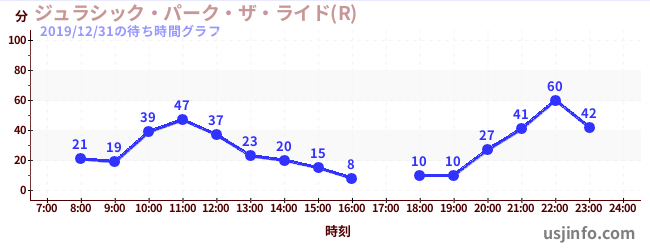 • ジュラシック・パーク・ザ・ライド(R)$B$N(B2019年12月31日の待ち時間