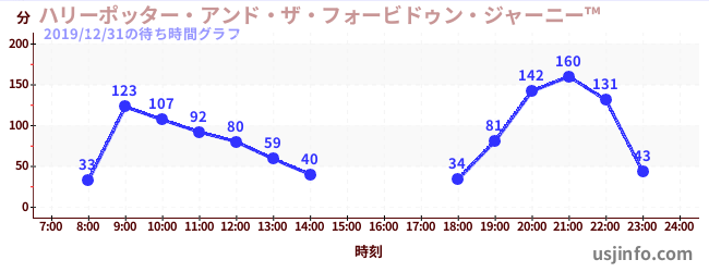 • ハリーポッター・アンド・ザ・フォービドゥン・ジャーニー™$B$N(B2019年12月31日の待ち時間