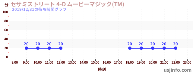 • セサミストリート 4-D ムービーマジック(TM)$B$N(B2019年12月31日の待ち時間