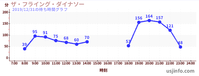 • ザ・フライング・ダイナソー$B$N(B2019年12月31日の待ち時間