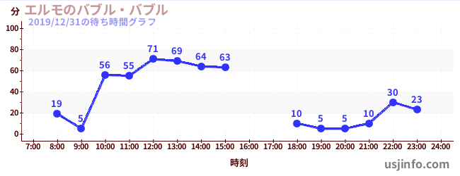 • エルモのバブル・バブル$B$N(B2019年12月31日の待ち時間