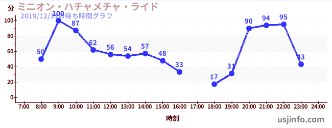 • ミニオン・ハチャメチャ・ライド$B$N(B2019年12月31日の待ち時間