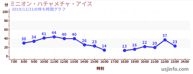• ミニオン・ハチャメチャ・アイス$B$N(B2019年12月31日の待ち時間