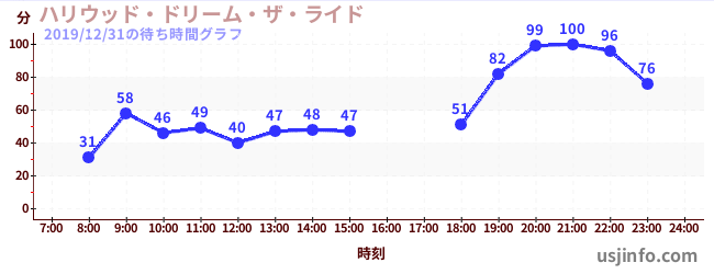 • ハリウッド・ドリーム・ザ・ライド$B$N(B2019年12月31日の待ち時間