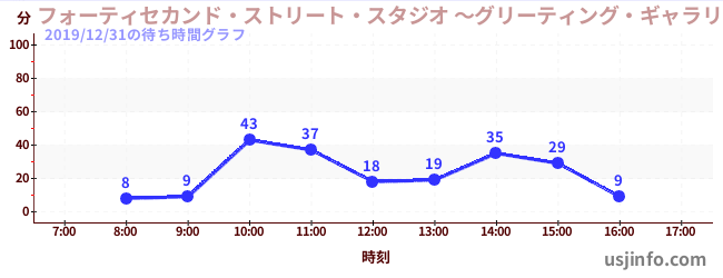 • フォーティセカンド・ストリート・スタジオ ~グリーティング・ギャラリー~ ミニオン$B$N(B2019年12月31日の待ち時間