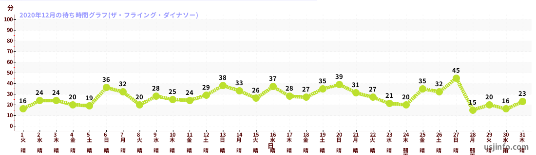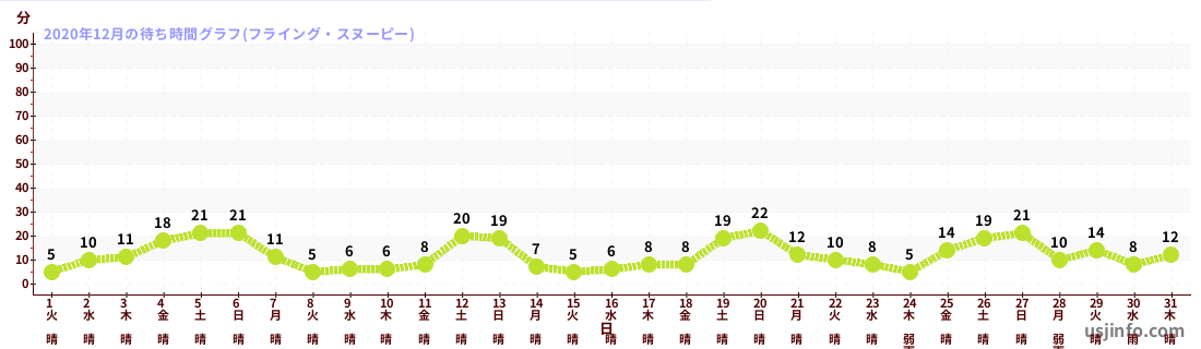 • フライング・スヌーピー$B$N(B2020年12月01日のの一日平均待ち時間