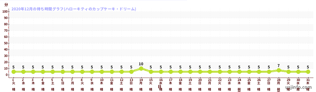 • ハローキティのカップケーキ・ドリーム$B$N(B2020年12月01日のの一日平均待ち時間