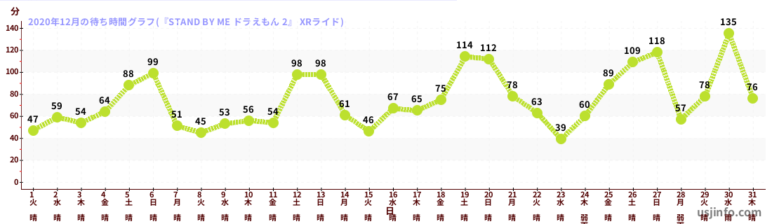 • 『STAND BY ME ドラえもん 2』 XRライド$B$N(B2020年12月01日のの一日平均待ち時間