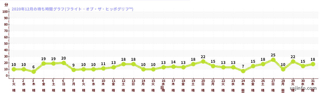 • フライト・オブ・ザ・ヒッポグリフ™$B$N(B2020年12月01日のの一日平均待ち時間