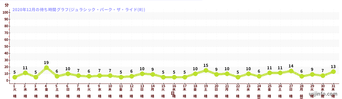 • ジョーズ(R)$B$N(B2020年12月01日のの一日平均待ち時間