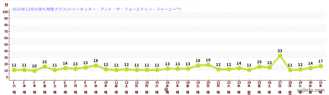 • ハリーポッター・アンド・ザ・フォービドゥン・ジャーニー™$B$N(B2020年12月01日のの一日平均待ち時間