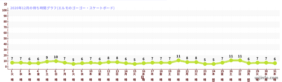 • エルモのゴーゴー・スケートボード$B$N(B2020年12月01日のの一日平均待ち時間