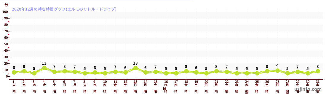 • エルモのリトル・ドライブ$B$N(B2020年12月01日のの一日平均待ち時間